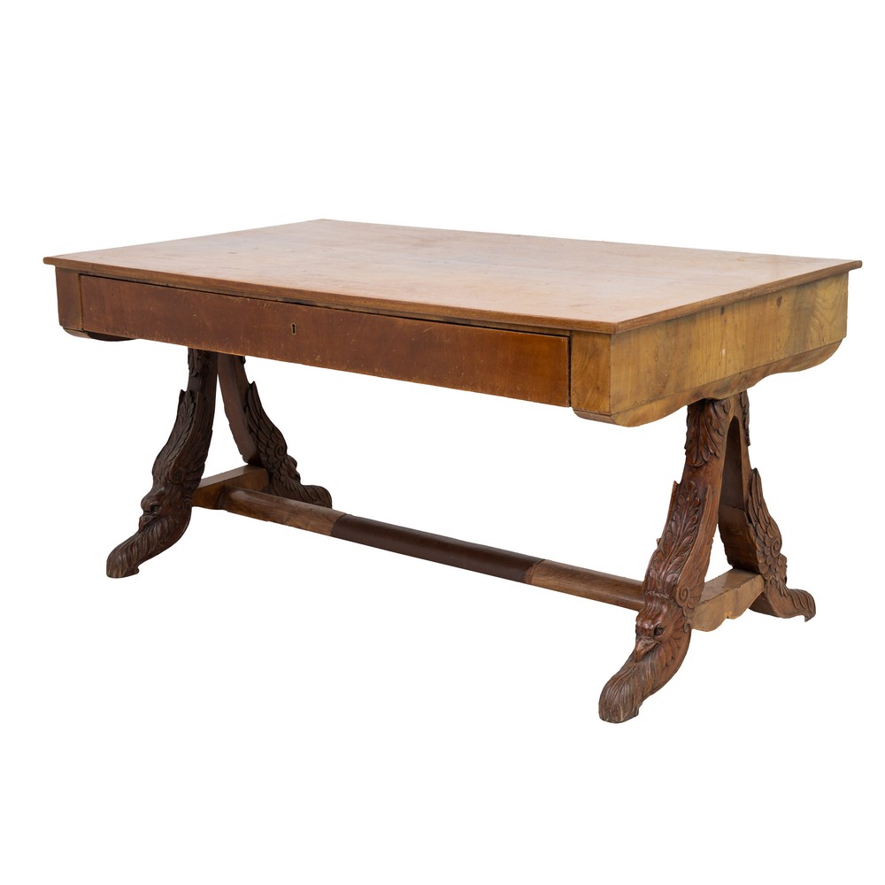 Grande scrittoio tardo Impero con cassetto in legno di noce.
