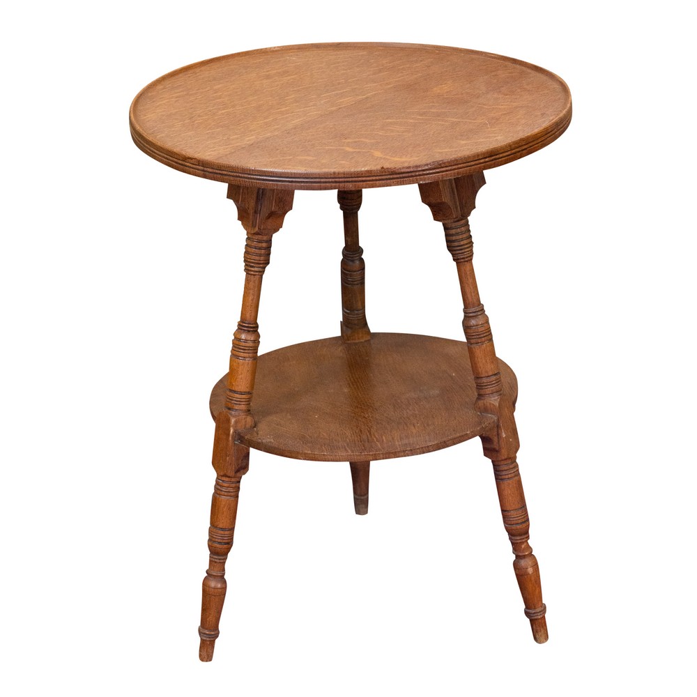 Tavolino in legno di rovere a due ripiani.