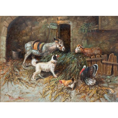 Animali da fattoria dentro la stalla