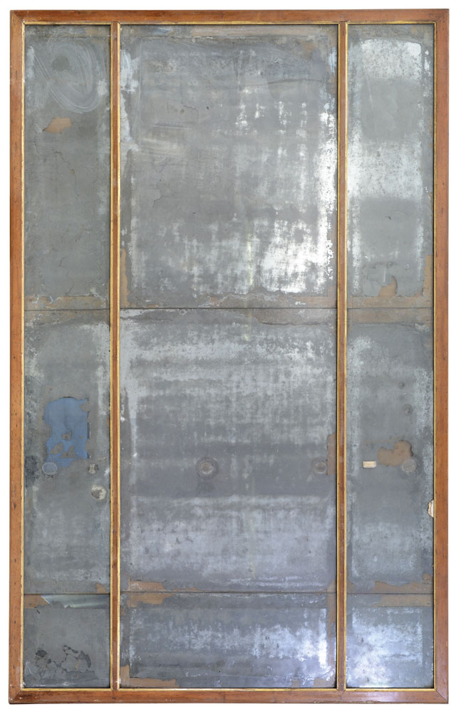 GRANDE SPECCHIERA FONDOSALA LUIGI XVI, FINE XVIII SECOLO, rettangolare tripartita con settori di specchi; difetti, usure e sbeccature.