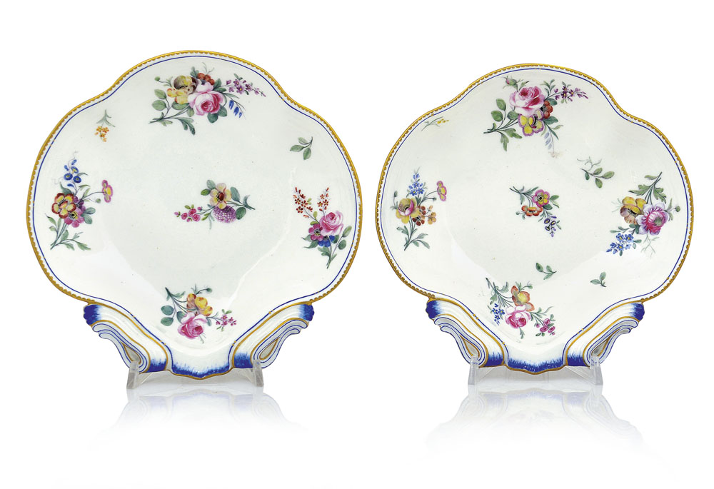 SEVRES COPPIA DI CIOTOLE IN PORCELLANA, SEVRES, XVIII SECOLO, a conchiglia,...
