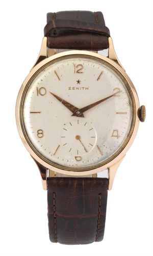 ZENITH Solo tempo oro rosa anni '50 Diametro 36 mm Cassa in tre parti, quadrante con indici e numeri applicati. Movimento a carica manuale. A pink gold only time 50's
