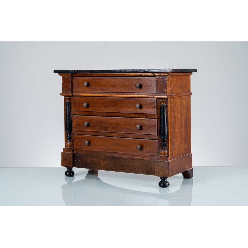 Cassettoncino in miniatura stile Impero in legno di noce.