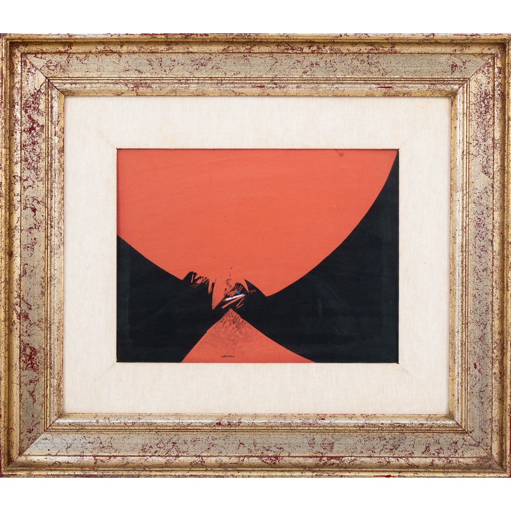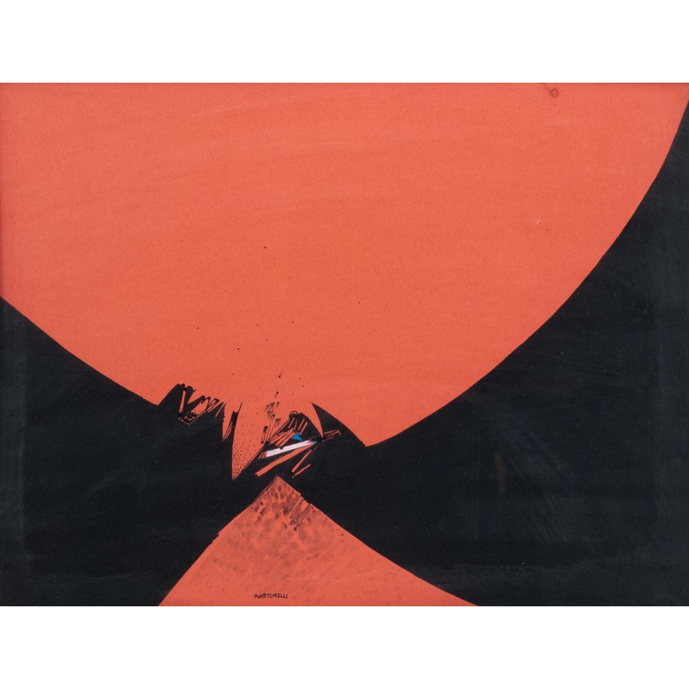 Lotto 766 | GIGI MARTORELLI, Tecnica mista su cartoncino rosso