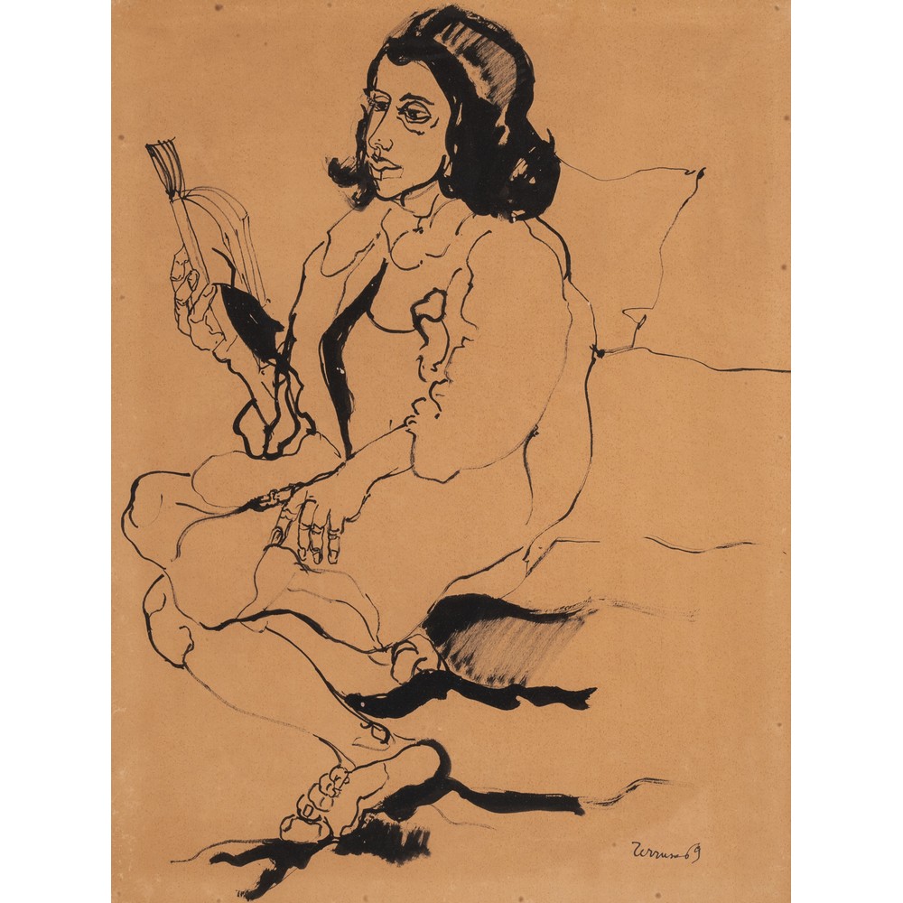 SAVERIO TERRUSO, Donna che legge, China su carta