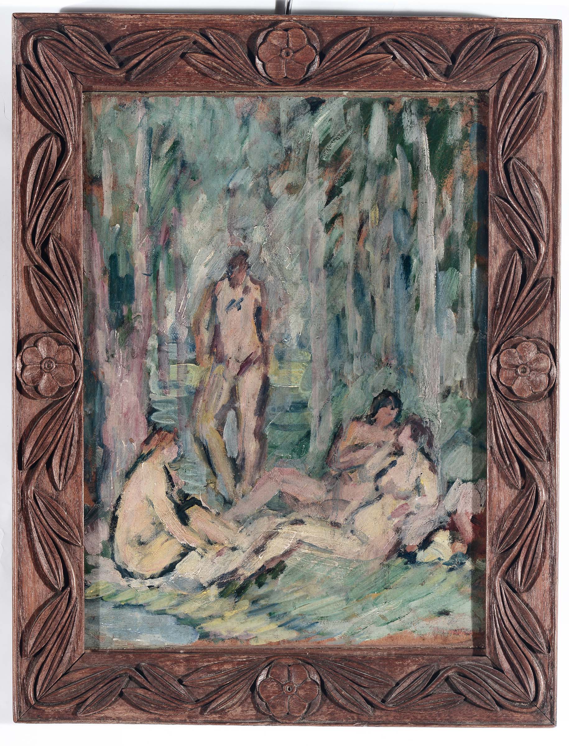 Piero Marussig (1879-1937), Le bagnanti, omaggio a Cezanne olio su cartone...