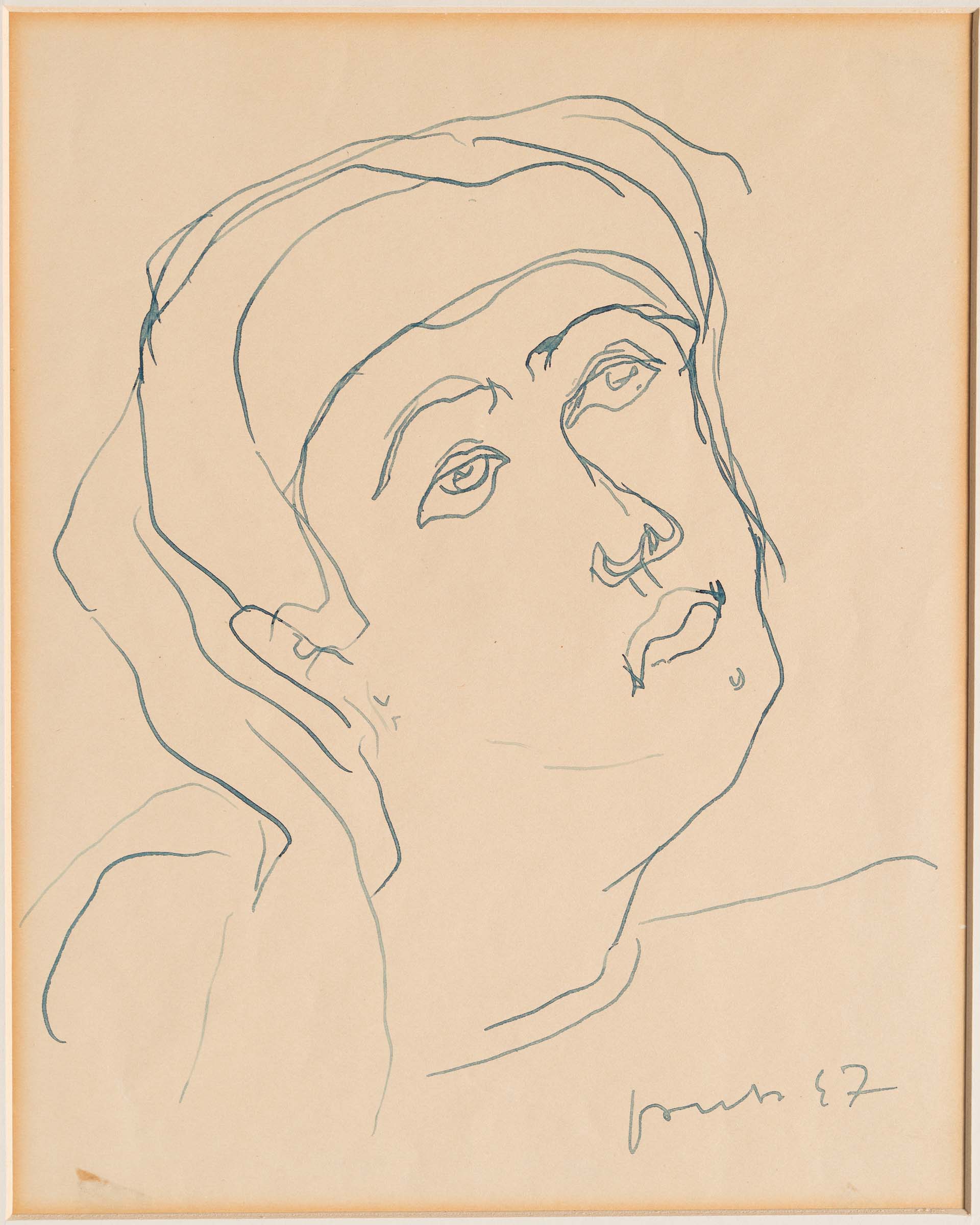 Lucio Fontana (1899-1968), Testa di donna, 1947 inchiostro blu su carta, cm 37x26 firmato in basso a destra, autentica della Fondazione Fontana 842/2