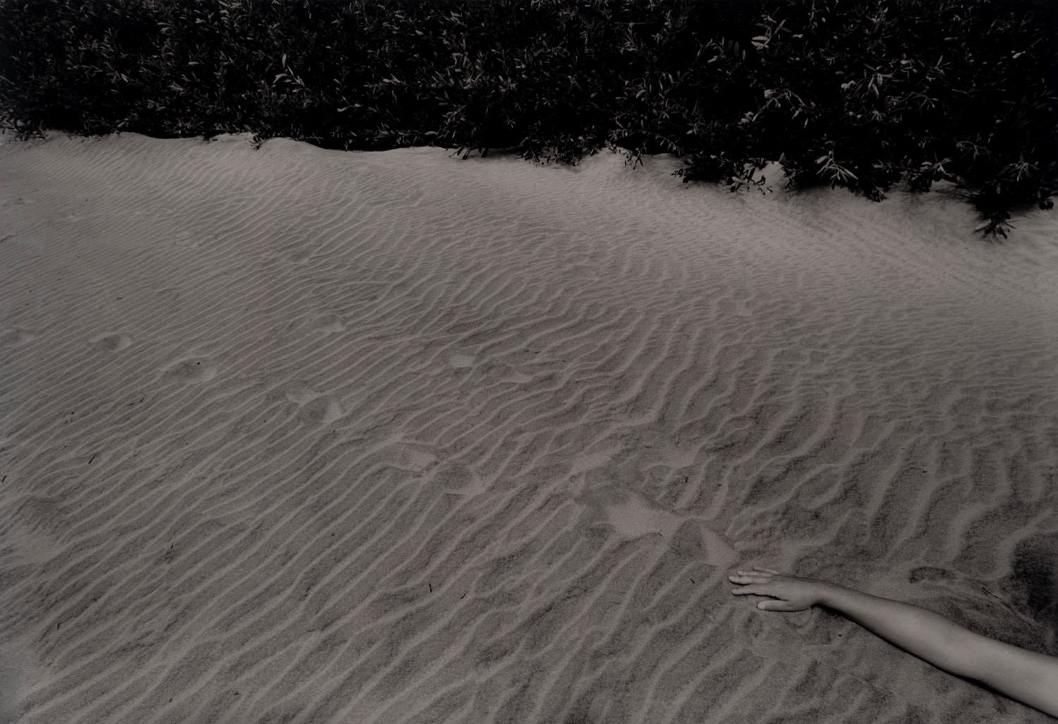Francesco Radino utilizza nella stessa misura il bianco e nero come il colore mantenendo in entrambi i casi i toni di quella delicatezza che ben interpreta il suo stile garbato e sempre attraversato da una vena di ironia. Queste due opere ben rappresentano il suo modo di osservare la realtà: non è un caso se un suo libro monografico è ben intitolato Modus videndi. Una spiaggia, un braccio che si allarga e, nonostante occupi solo una piccola porzione di spazio, consenta su di sé tutta l’attenzione. Con pochi, e in apparenza poco significativi particolari, Radino sa costruire una fotografia carica di molte suggestioni. Per riprendere piazza Duomo, sceglie una composizione insolita che sfugge al prevedibile: decide di non mettere al centro la cattedrale segnandone la presenza con un richiamo che occupa la parte sinistra dell’immagine e concentra poi l’attenzione sullo spiazzo che si affaccia su Palazzo Reale, osservato leggermente dall’alto per sottolinearne l’ampiezza.