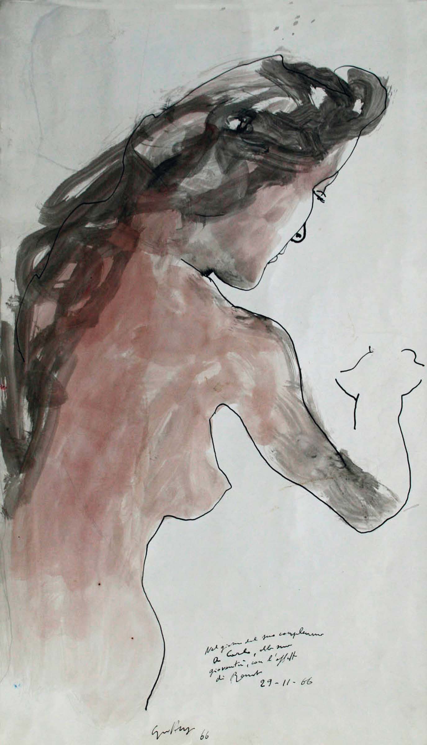 Renato Guttuso (1911-1987), Nudo, 1966 acquarello, cm 63,5x36,5, Autentica dell'Archivio Guttuso su fotografia con il n. 1815411938