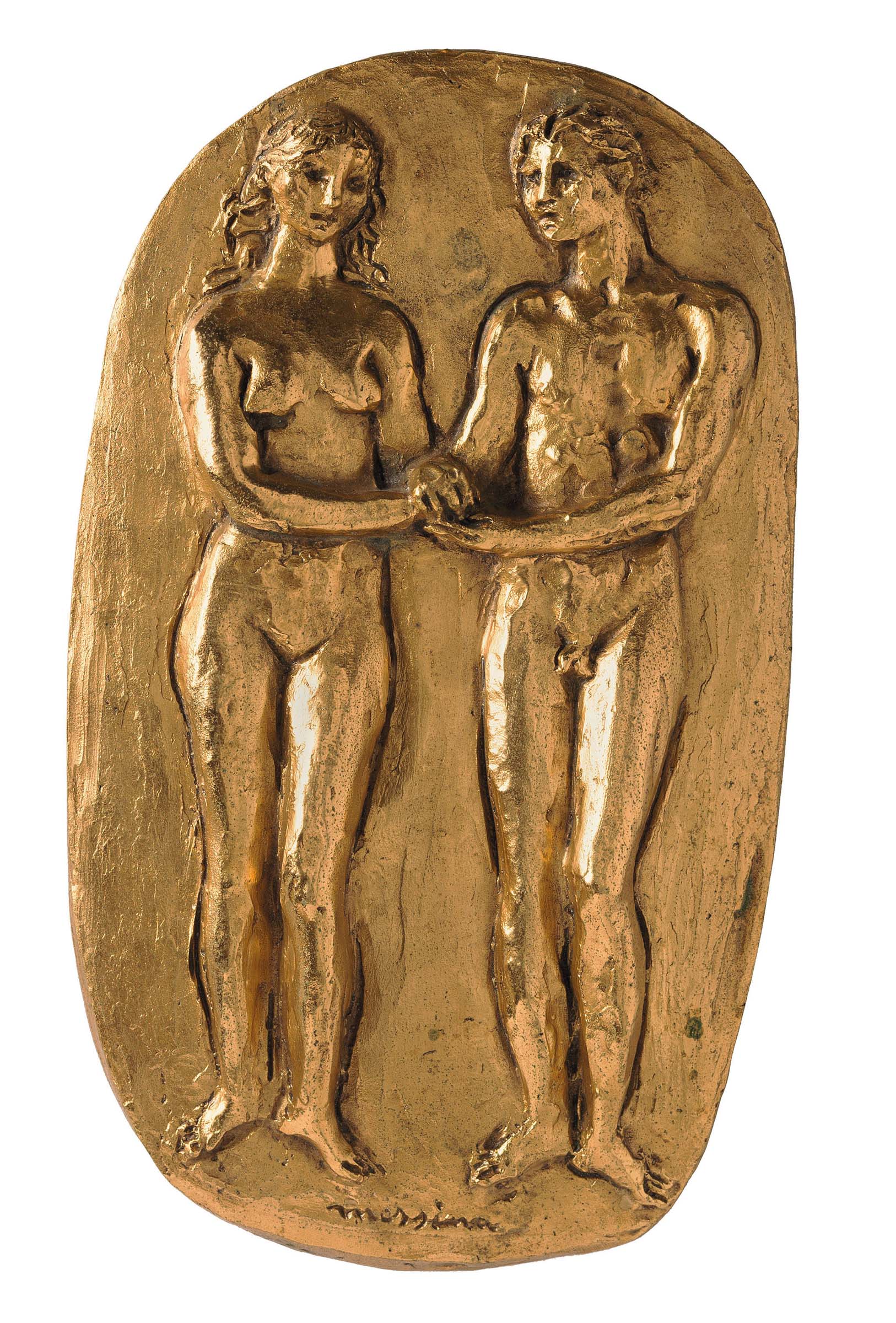 Francesco Messina (1900-1995), La coppia bassorilievo in bronzo dorato, cm...