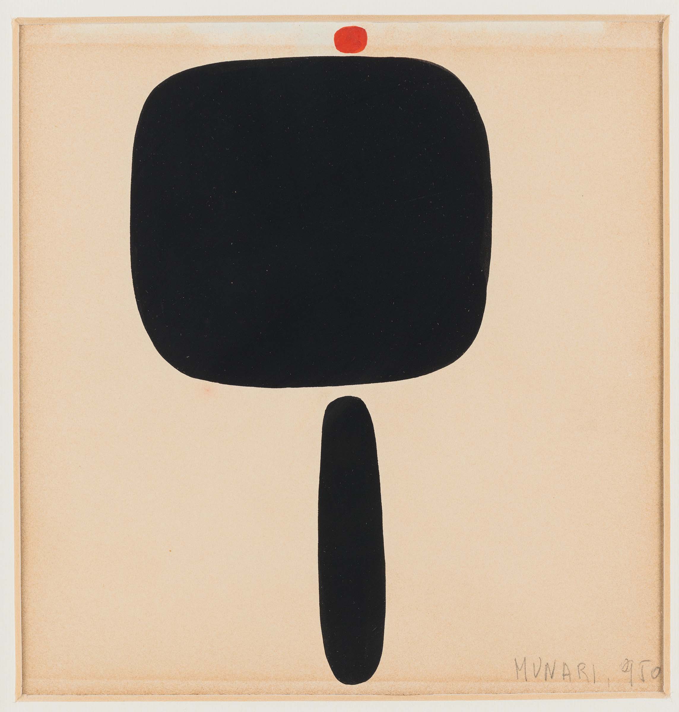 Bruno Munari (1907-1998), Rosso a Nord, 1950 tempera su carta, cm 18x17,5, firmato e datato in basso a destra, titolo e firma sul retro, autentica su fotografia di Bruno Munari