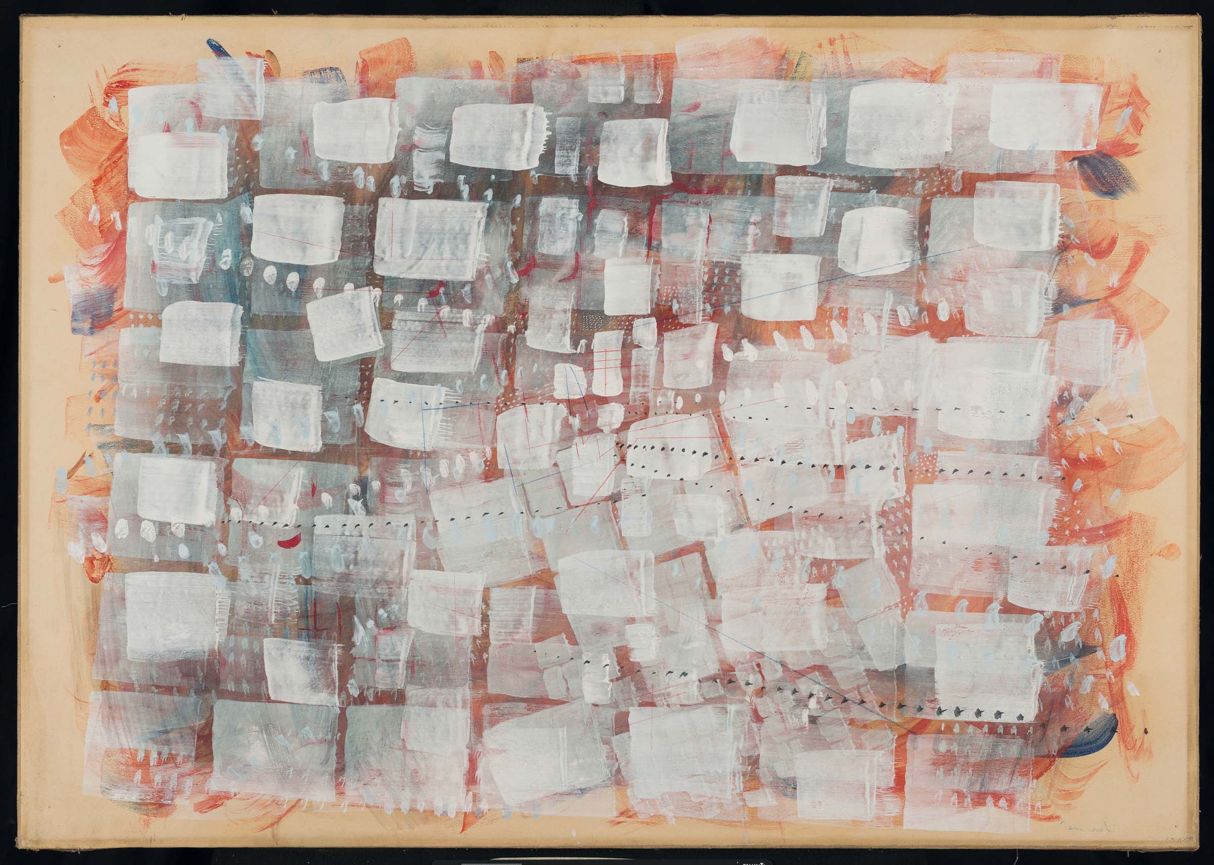 Tancredi (1927-1964), Composizione tempera su carta, cm 100x70 firmato in basso a destra, autentica di Giuseppe Marchiori su fotografia in data 23/06/1977 - Venezia n. 128