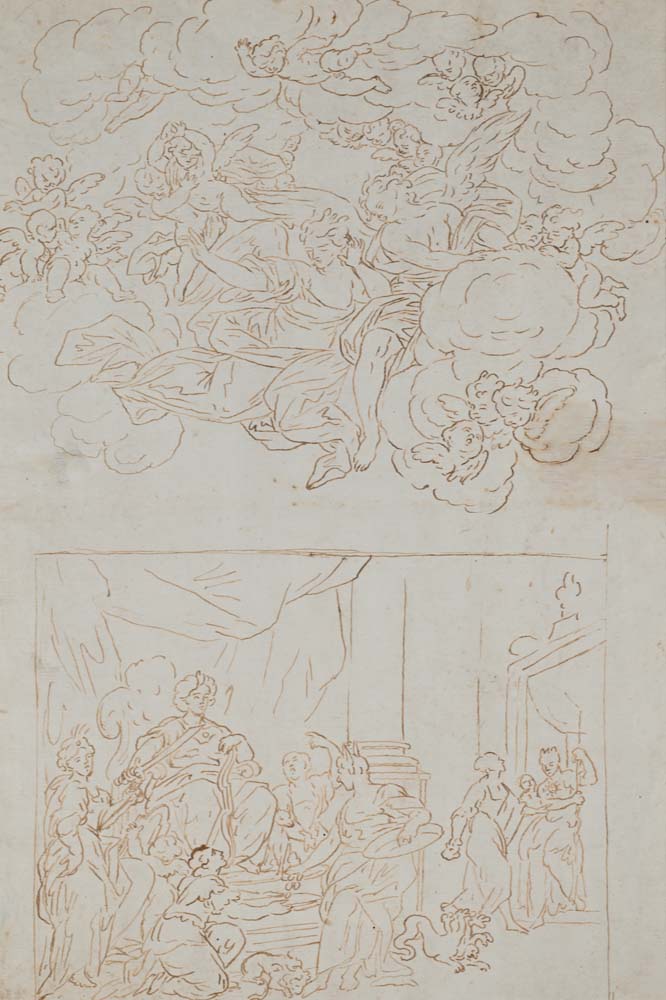 Scuola Veneta del XVII secolo Scena biblica con corteo di angeli Inchiostro...