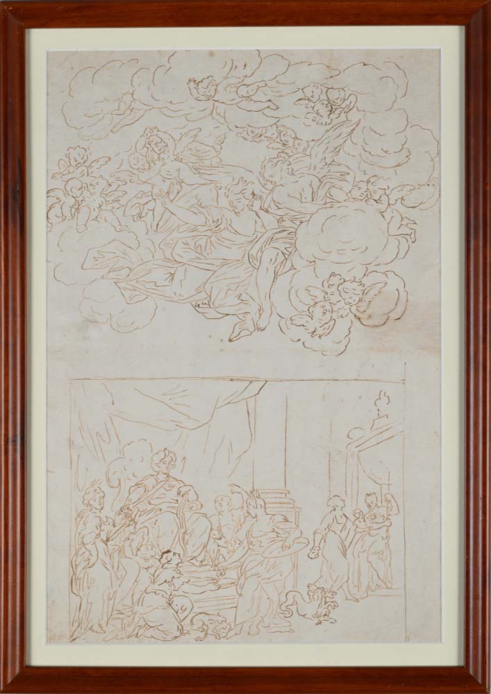 Scuola Veneta del XVII secolo Scena biblica con corteo di angeli Inchiostro su carta mm 420x280 - in cornice cm 49x34