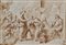 Scuola fiorentina del XVIII secolo San Pietro d'Alcantara riceve il cibo da Gesù alla presenza di Santa Teresa d'Avila e Maria Diaz Pietra nera e inchiostro bruno acquerellato su carta mm 290x400 Da un'invenzione di Antonio Domenico Gabbiani