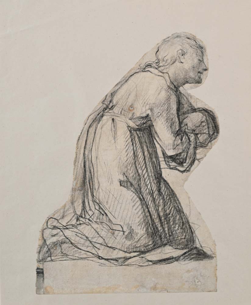 Scuola toscana del XVIII secolo Studio di figura inginocchiata Pietra nera su carta mm 230x150 - con passe-partout cm 33x27