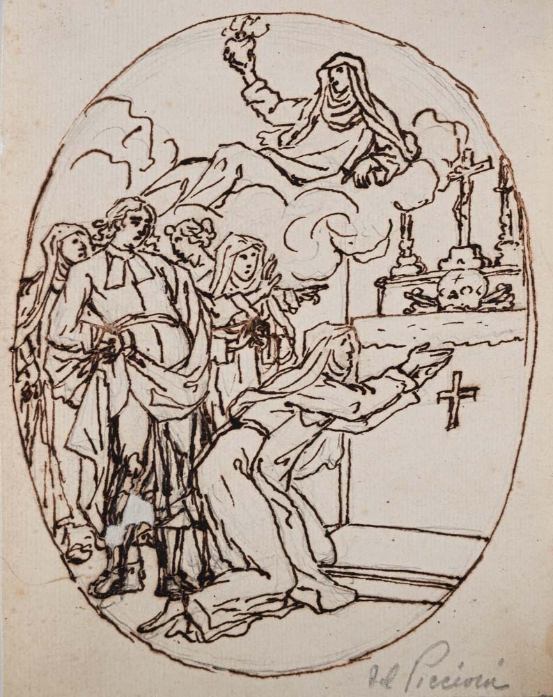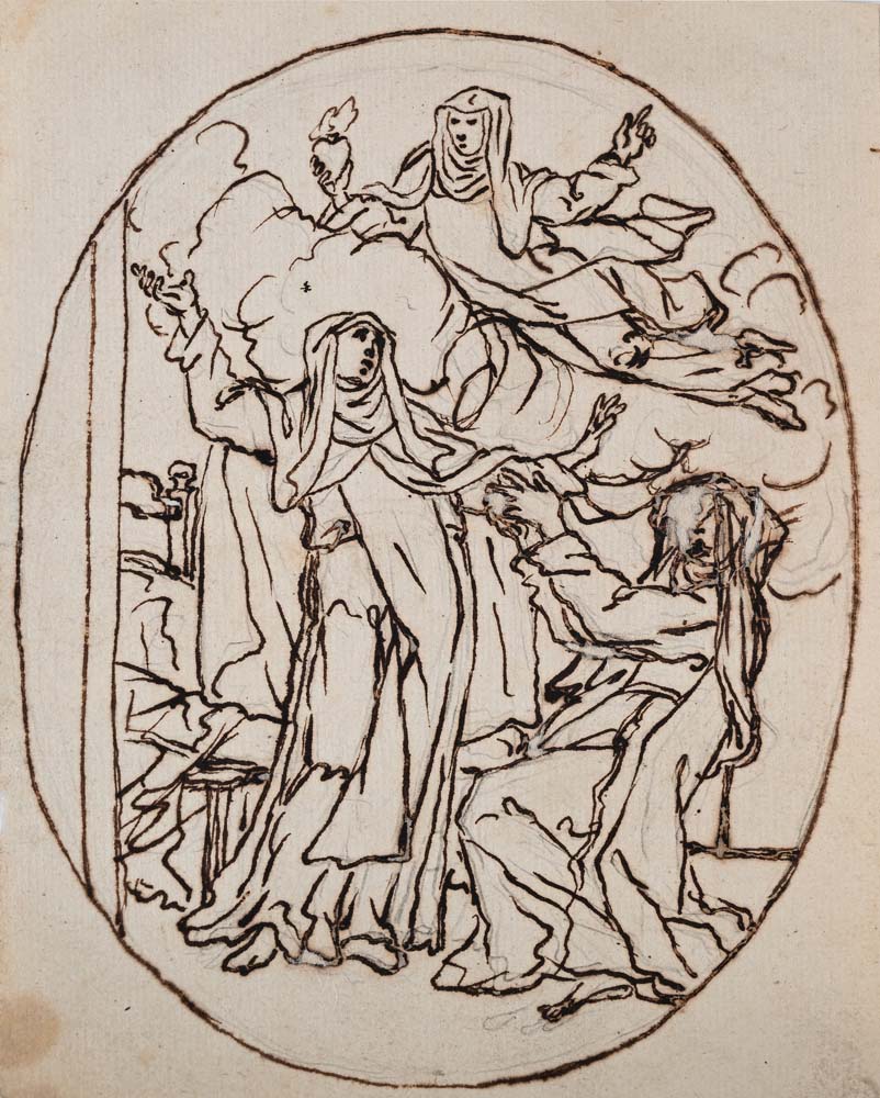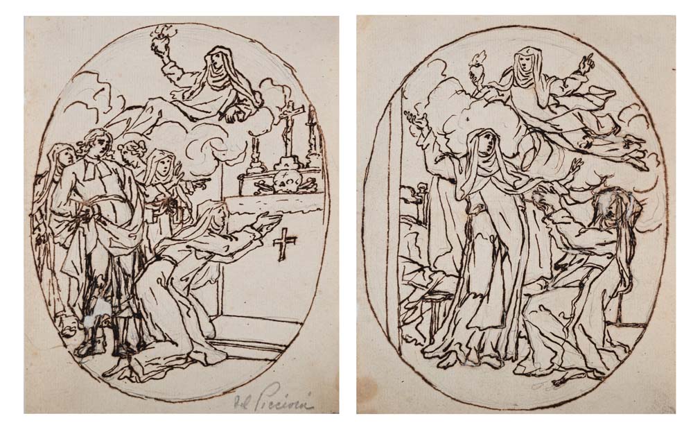 Scuola fiorentina del XVIII secolo Scene di Santa china e pietra nera su carta mm 160x130