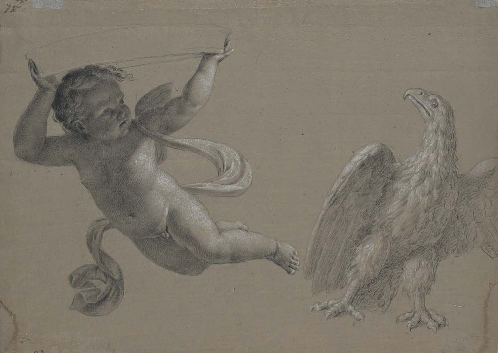 Francesco Podesti (attribuito a) Studio di Putto e aquila Pietra nera con...