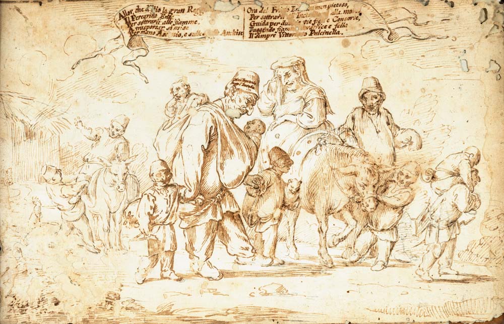 Pier Leone Ghezzi Studio per Pulcinella fugge dalla casa in fiamme inchiostro...