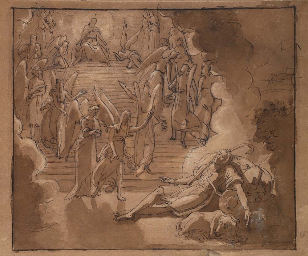 Francesco Coghetti (attribuito a) Recto: Il Sogno di Giacobbe - Verso: Studio accademico China e inchiostro acquerellato su carta mm 210x240