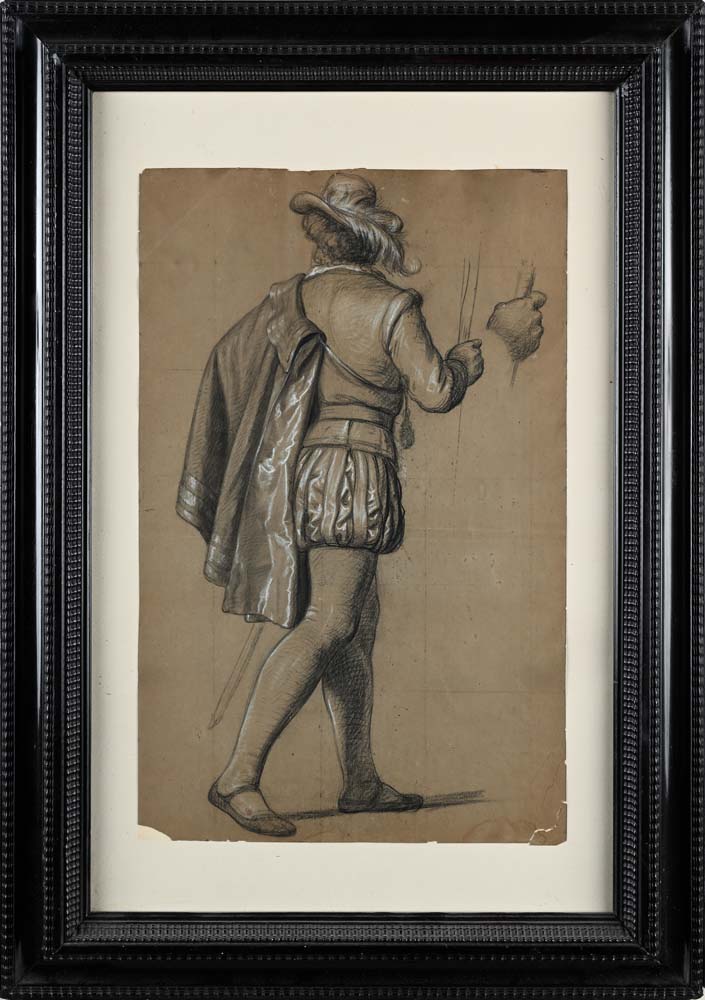 Scuola toscana del XIX secolo Studio di figura con cappello di spalle...