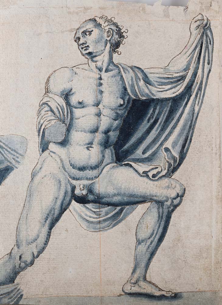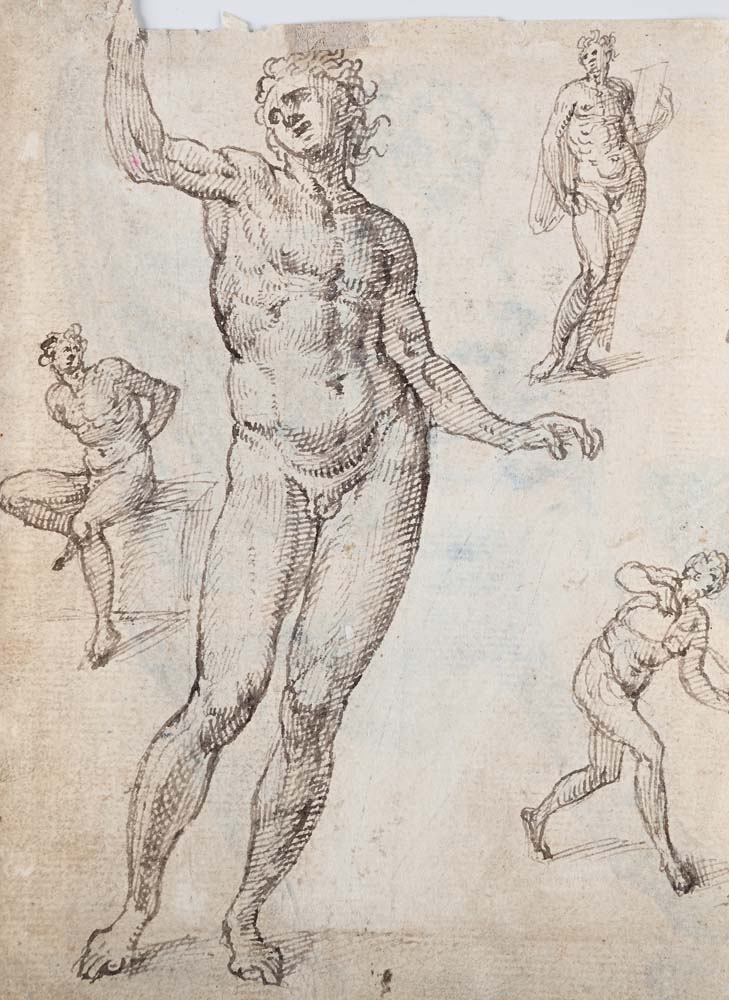 Baccio Bandinelli (cerchia di) Recto: Studi di figura - Verso: Studio di Nudo Accademico China e inchiostro acquerellato su carta mm 170x130
