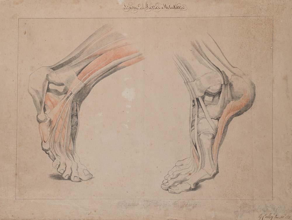 Scuola neoclassica Studio di anatomico dei piedi Pietra nera e pietra rossa su carta 440x580 - con passe-partout cm 47x68 Firmato e datato in basso a destra "G. Callay fece Sett. 1821"