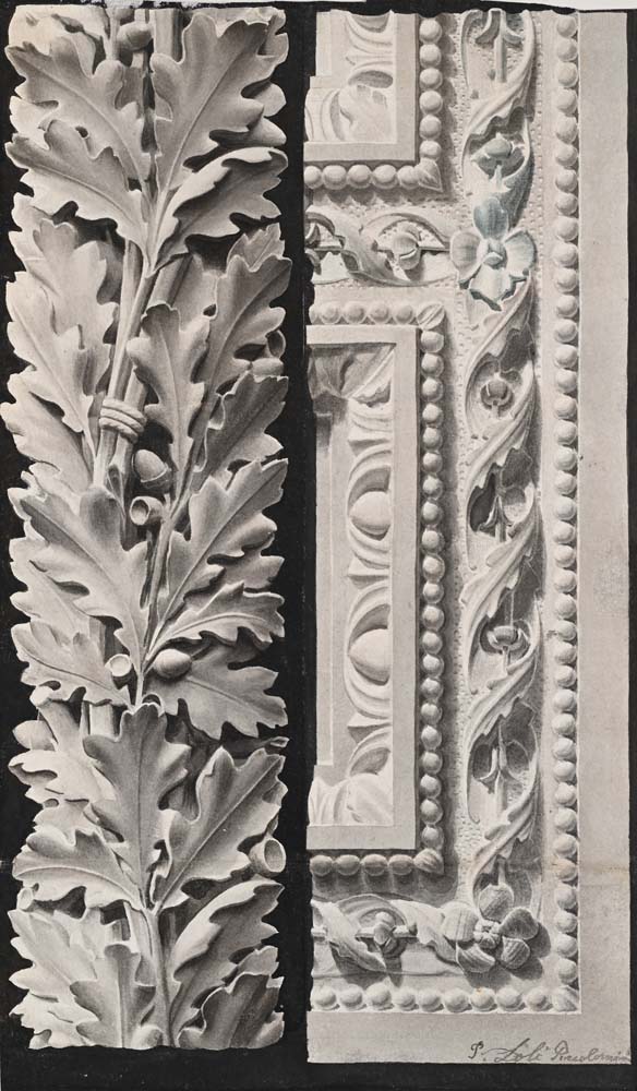 Pietro Loli Piccolomini Studio per fregio architettonico Tempera su carta mm 360x210 Firmato in basso a destra "P. Loli Piccolimini"