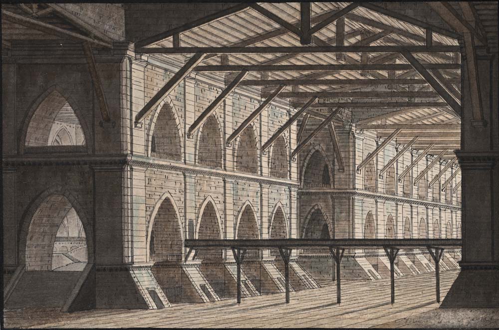 Scuola bolognese del XVIII secolo Veduta fantasiosa di interno China e inchiostri acquerellati su carta mm 150x220