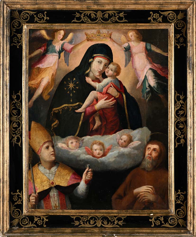 Pittore Napoletano del XVIII secolo Madonna Regina del cielo col Bambino, San...