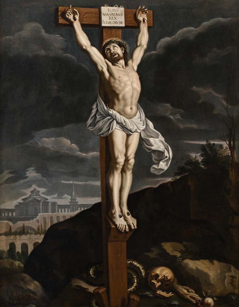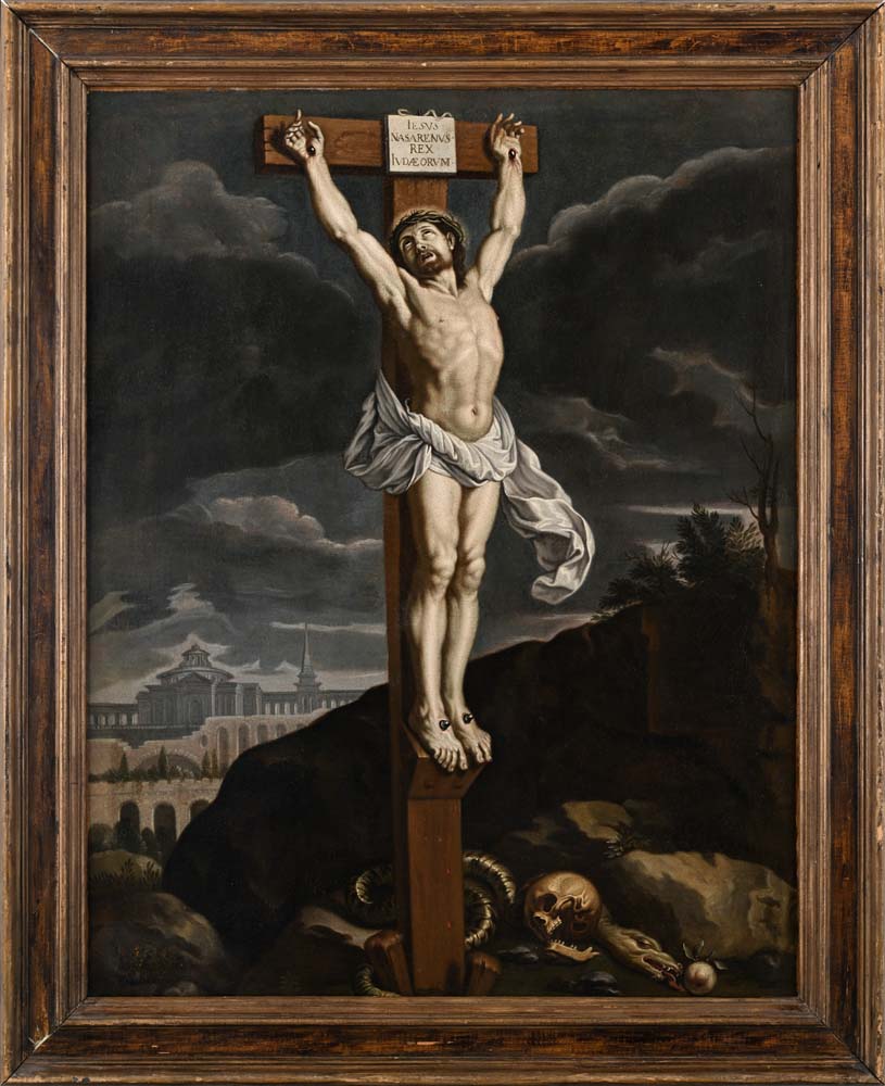 Crocifissione olio su tela cm 104x81 - con cornice cm 122,5x99 Il Cristo crocifisso qui in esame è con ogni probabilità da ascrivere alla produzione di un pittore