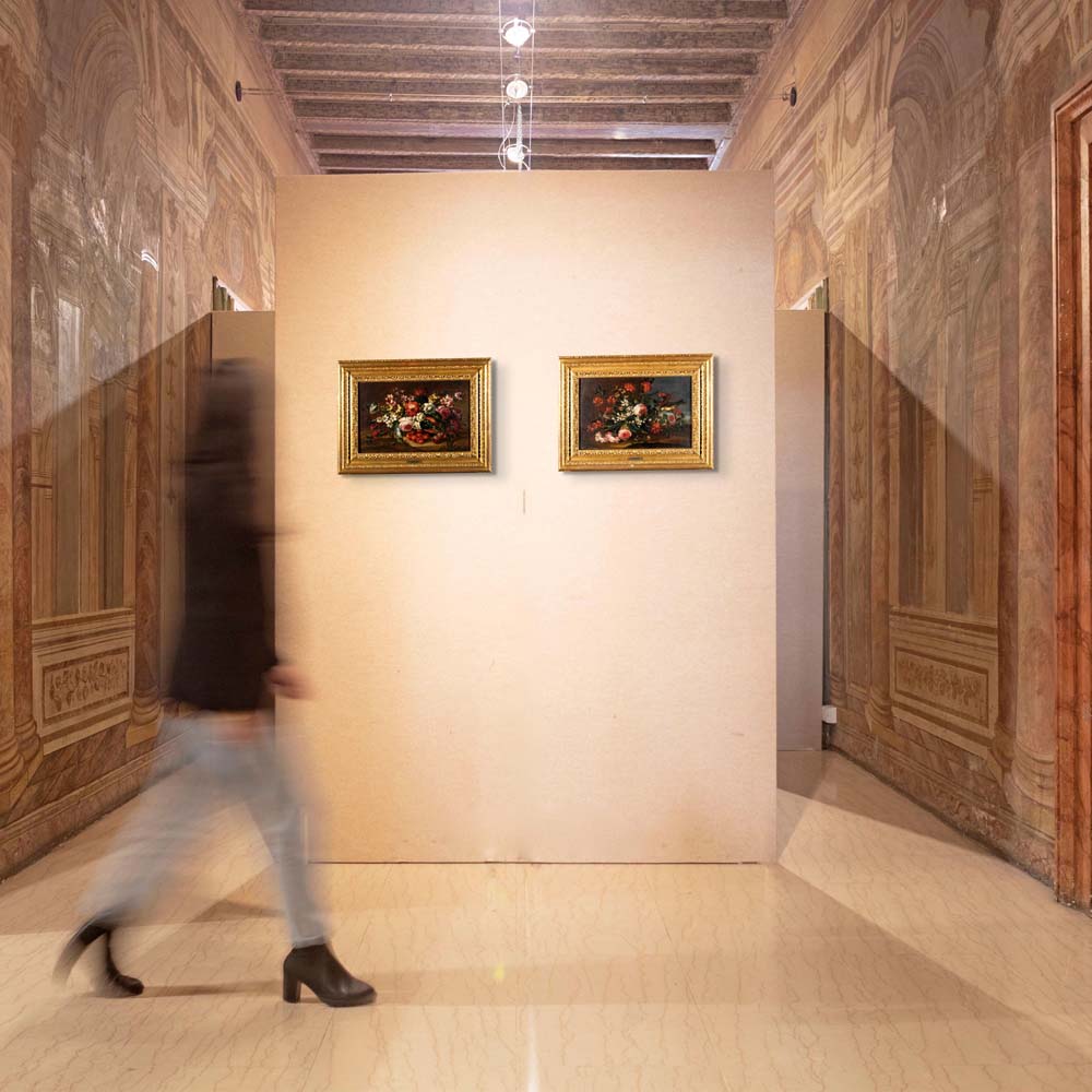 Coppia di dipinti: Natura morta con fiori coppia di olii su tela cm 26x41 – con cornice cm 41x56