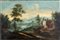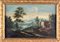 Scuola veneta del XVIII secolo Paesaggio collinare con fiume e caseggiati...