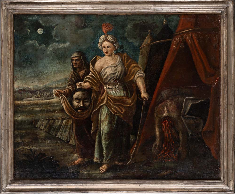 Pittore del XVII secolo Giuditta e Oloferne olio su tela cm 100x124 - con...