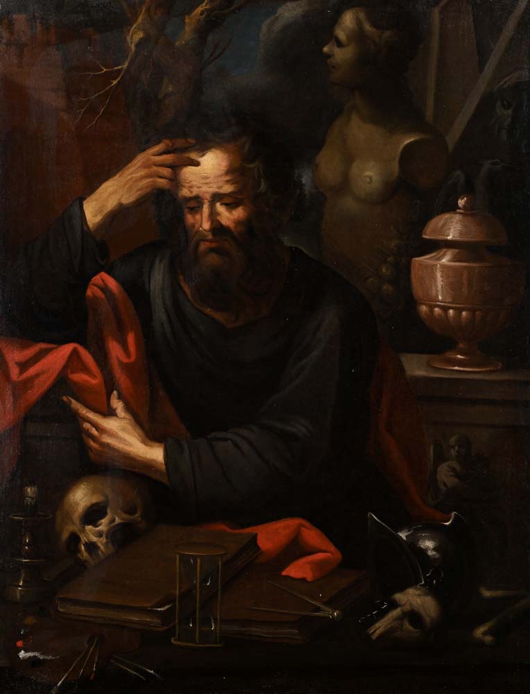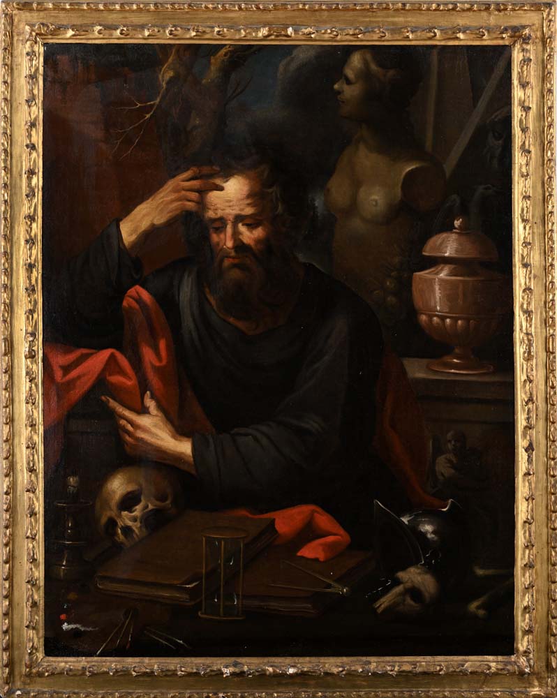 Scuola napoletana del XVII secolo Filosofo Olio su tela cm 123x95 - con...