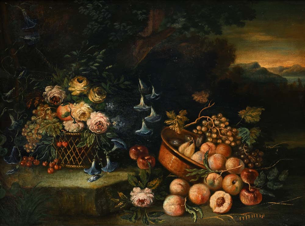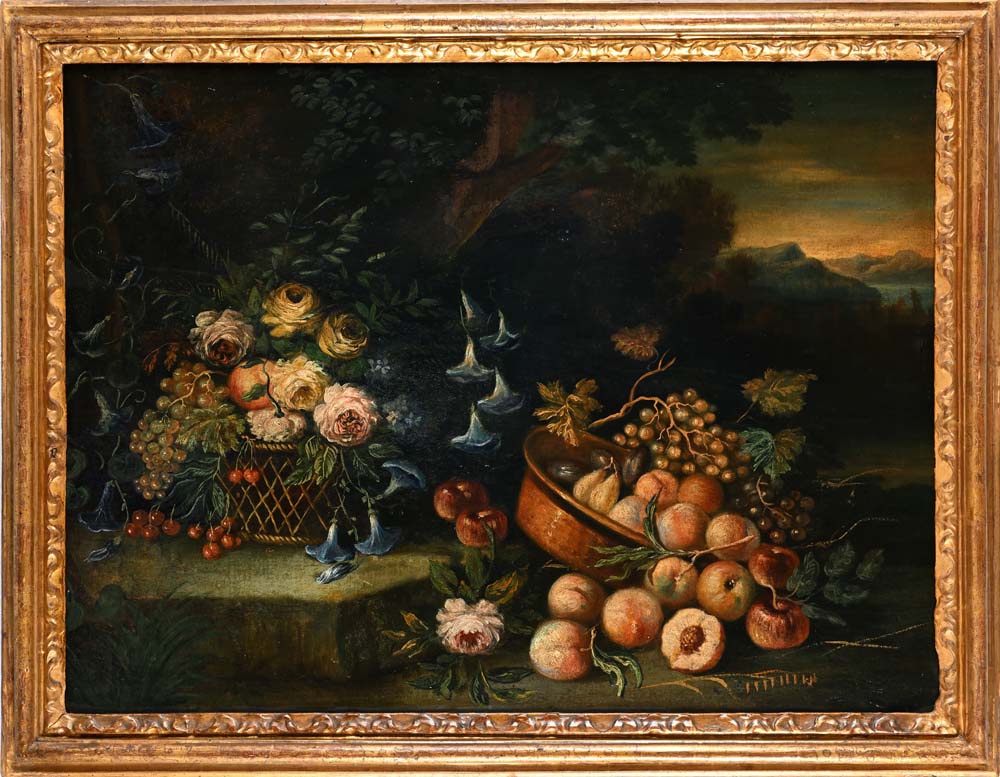 Pittore del XVIII secolo Natura morta olio su tela cm 76x103 - in cornice cm...