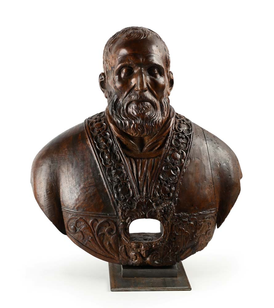 Busto reliquiario di San Filippo Neri cm 55,5x54x27 Restauro ottocentesco della spalla sinistra realizzato in mogano