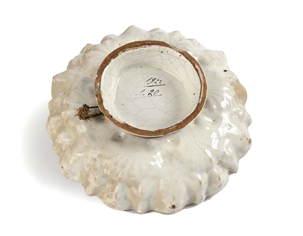 Crespina in maiolica bianca, Faenza, XVIII secolo coppa umbonata decorata da...