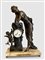 Materiali: Bronzo a patina scura, marmo venato, dettagli in bronzo dorato.