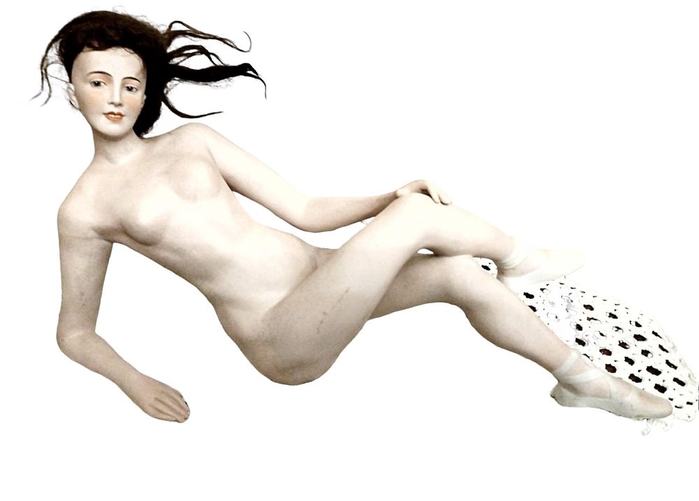 Elegante Scultura in Biscuit: Figura Femminile Nuda Reclinata