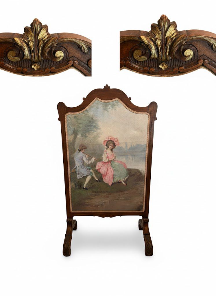 Paravento/Schermo da Camino con dipinto raffigurante Scena Galante cm 103x70 circa