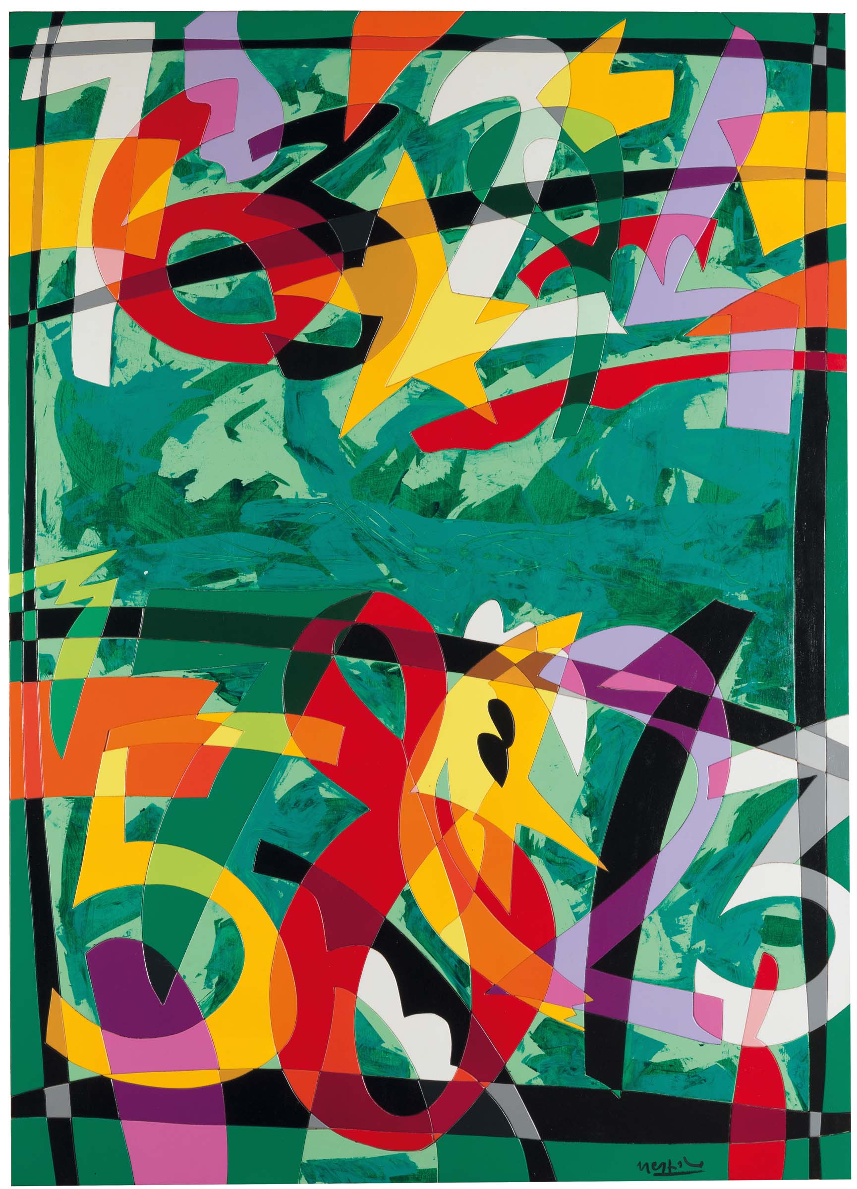 Lotto 150 | Ugo Nespolo (1941), In tralice acrilico su legno, cm 142x102 firmato ed...
