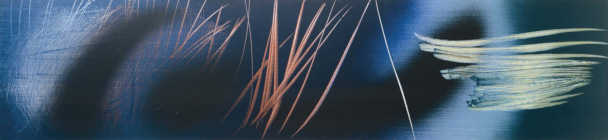 Hans Hartung (1904-1989), T.1962-U28 acrilico su tela, cm 58x250, certificato di autenticità della fondazione Hartung n. 2729 del 19-10-2000