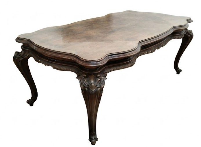 Lotto 132 | Grande tavolo da centro in stile Luigi XV "Mosso" – Essenza di noce con gambe a cabriole e intagli fogliacei – XX Secolo