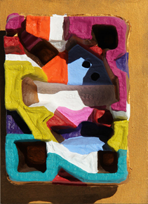 ZUCCHI ANDREA Imballaggio 2012 olio e acrilico su cartone sagomato su legno...