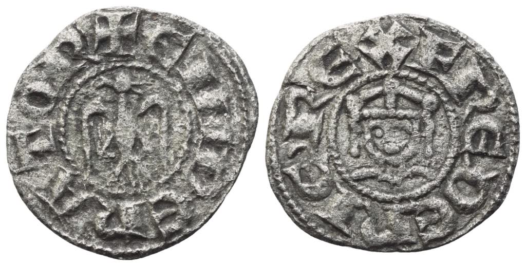 MESSINA. Enrico VI e Federico II (1196-1197). Denaro; Mi (0,65 g; 15,2 mm)