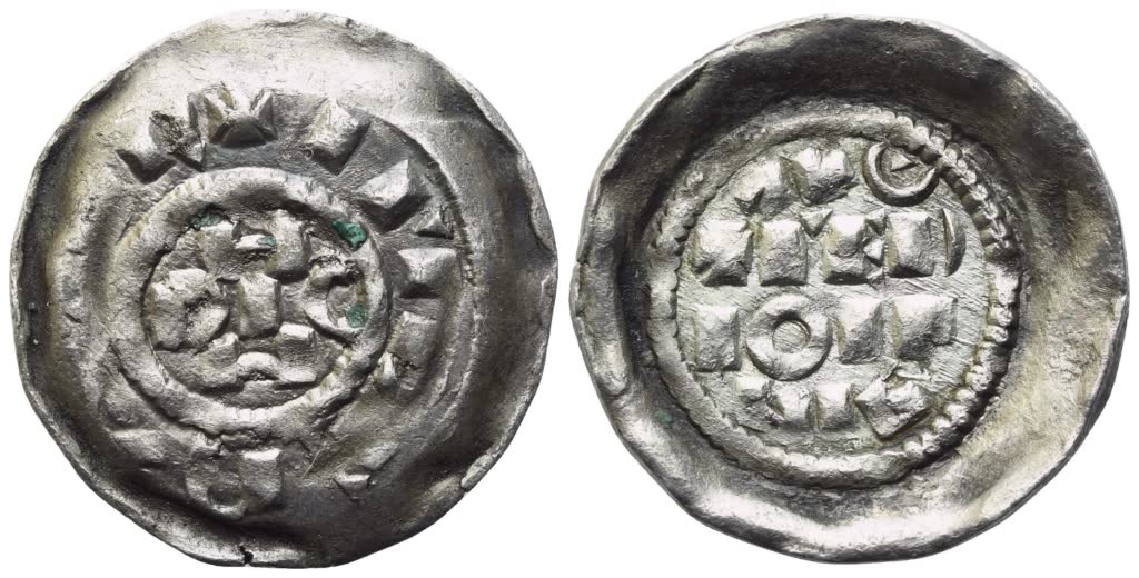 MILANO. Monetazione a nome dell'imperatore Enrico II (1004-1024). Denaro scodellato; Ag (1,20 g; 18 mm)