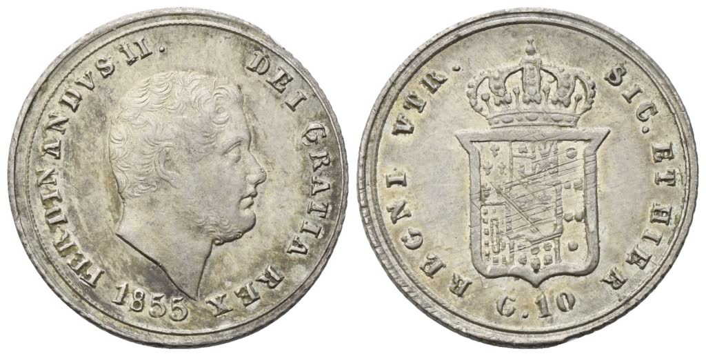 Lotto 133 | NAPOLI. Regno delle Due Sicilie. Ferdinando II di Borbone (18380-1859). Carlino 1855; Ag (2,34 g; 18 mm)