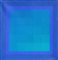 DEMARCO HUGO Armonia in bleu verde 1975 olio su tela cm. 50 X 50 Titolo, misure, firma, luogo, data 'Armonia in bleu verde, 50x50, Demarco, Paris, 1975' (al retro) Autentica dell'artista su fotografia