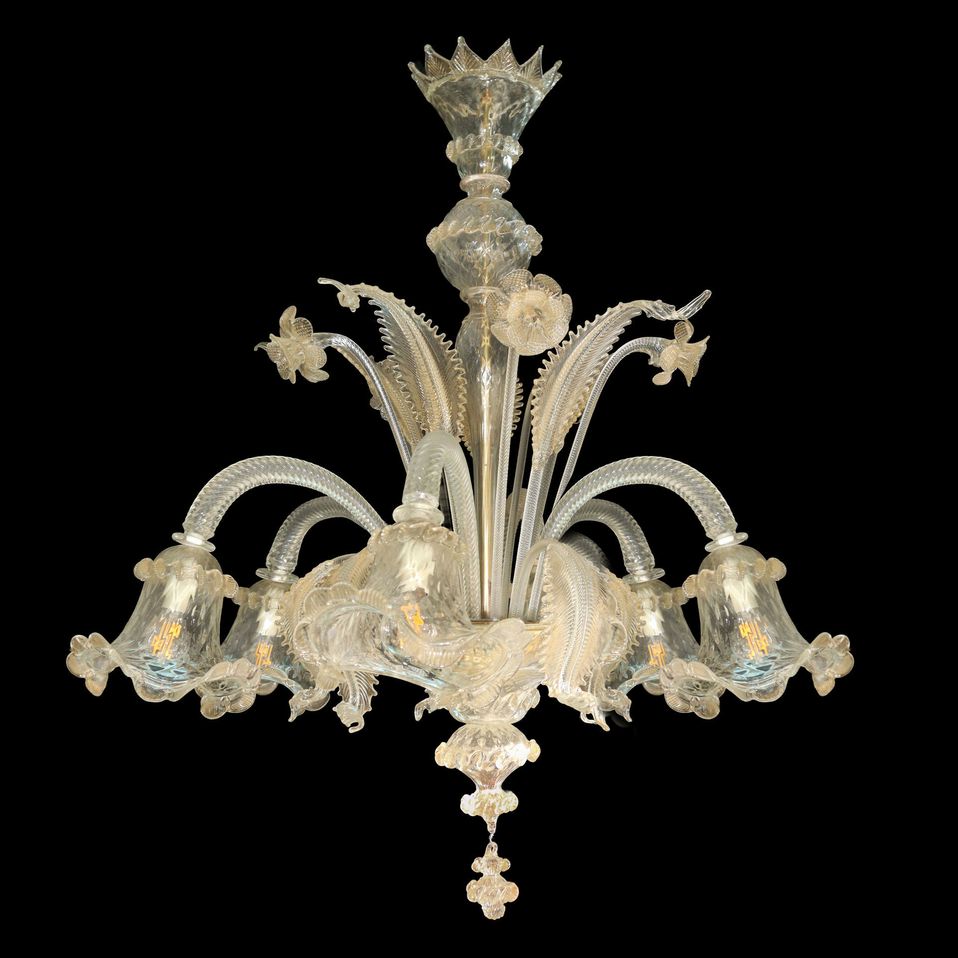 Lampadario in vetro di Murano a 6 luci in vetro trasparente